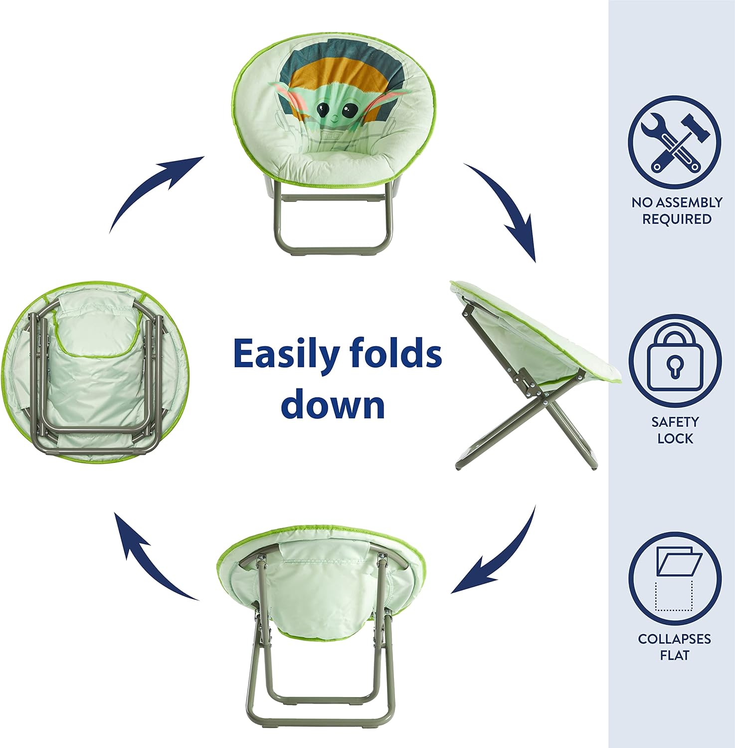 FOLDABLE: This saucer chair is foldable and perfect to store away when not in use. It folds flat for easy, space-saving transport and storage. No assembly is required.