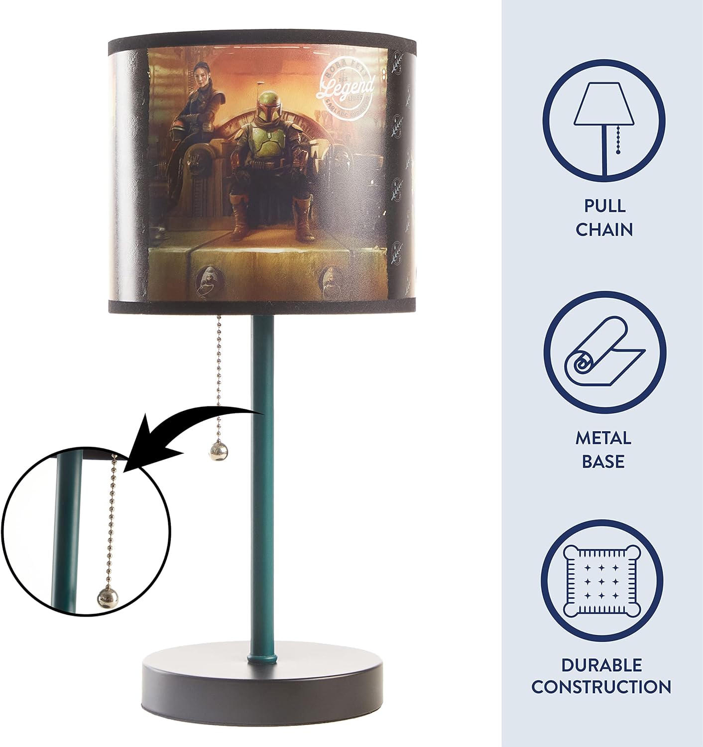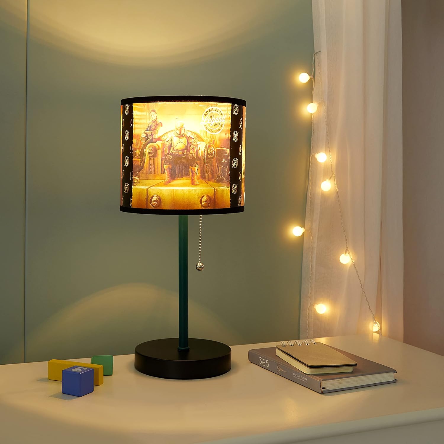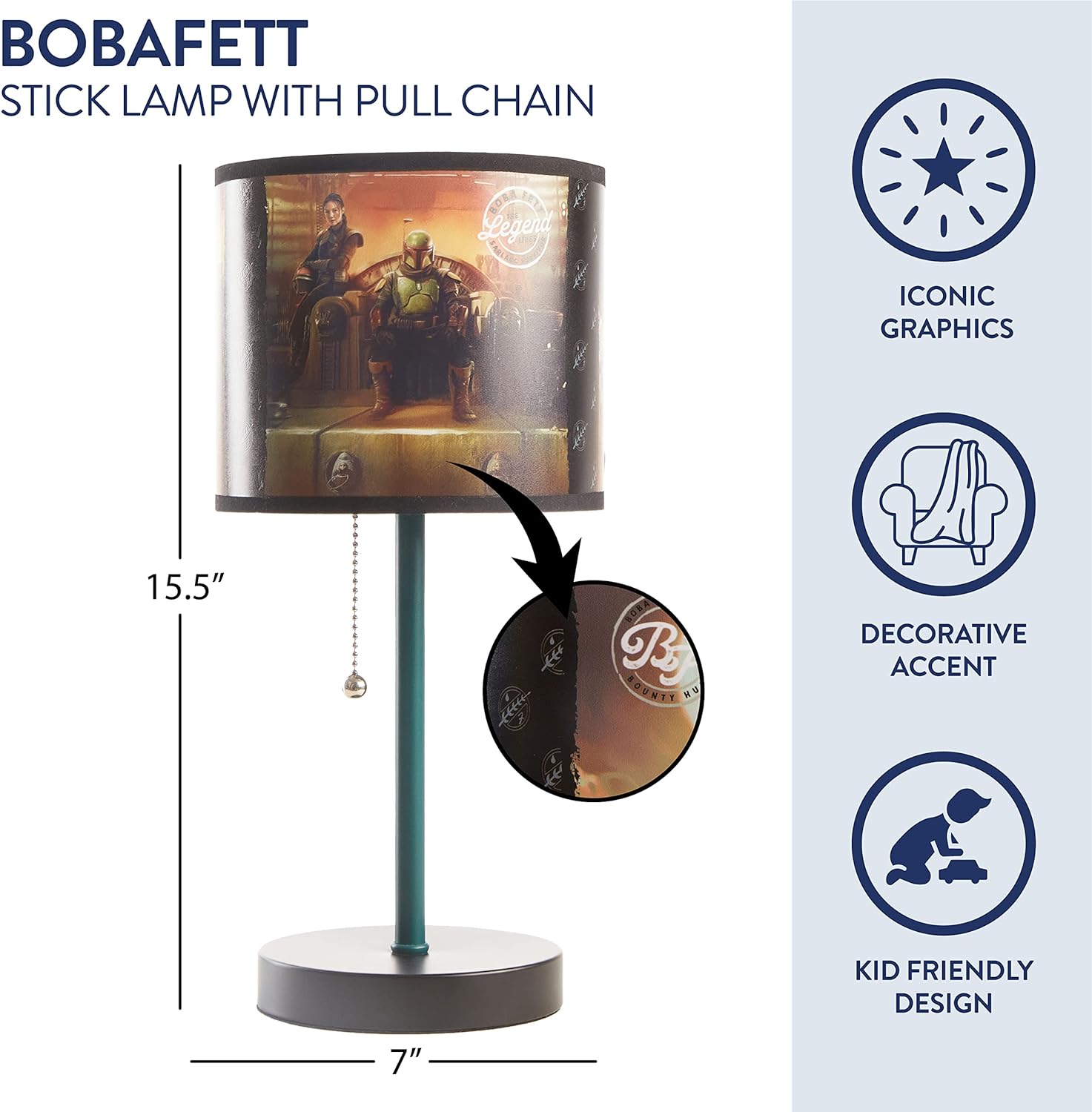 Disney Mickey Mouse 90th Anniversary Stick Table Kids Lamp With Pull Chain, Themed Printed Decorative Shade(Star Wars Boba Fett)