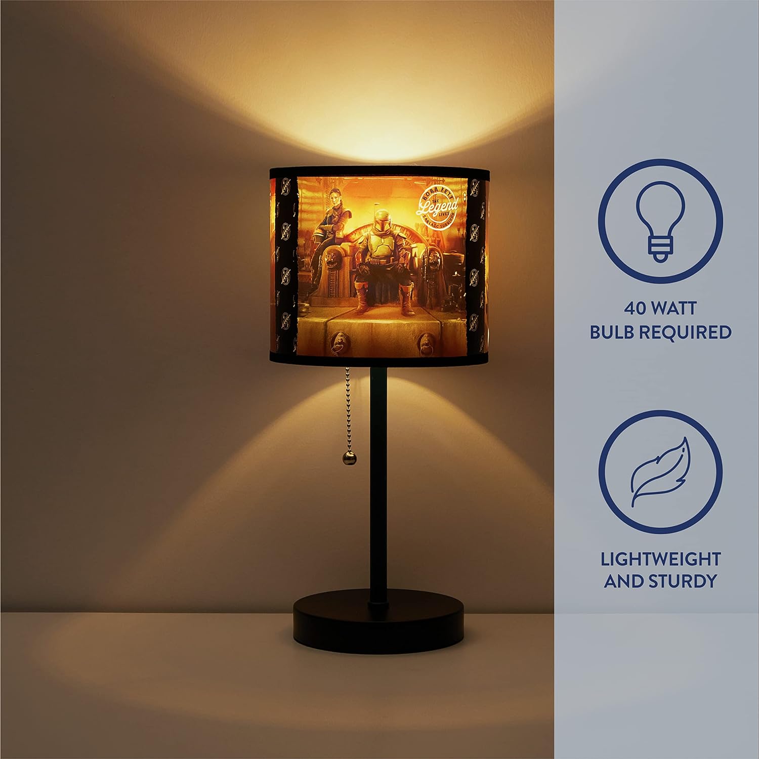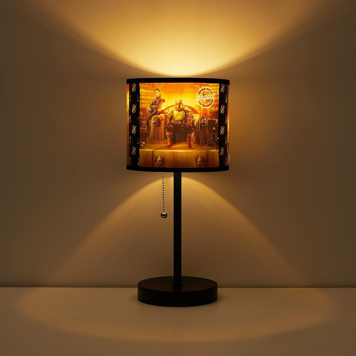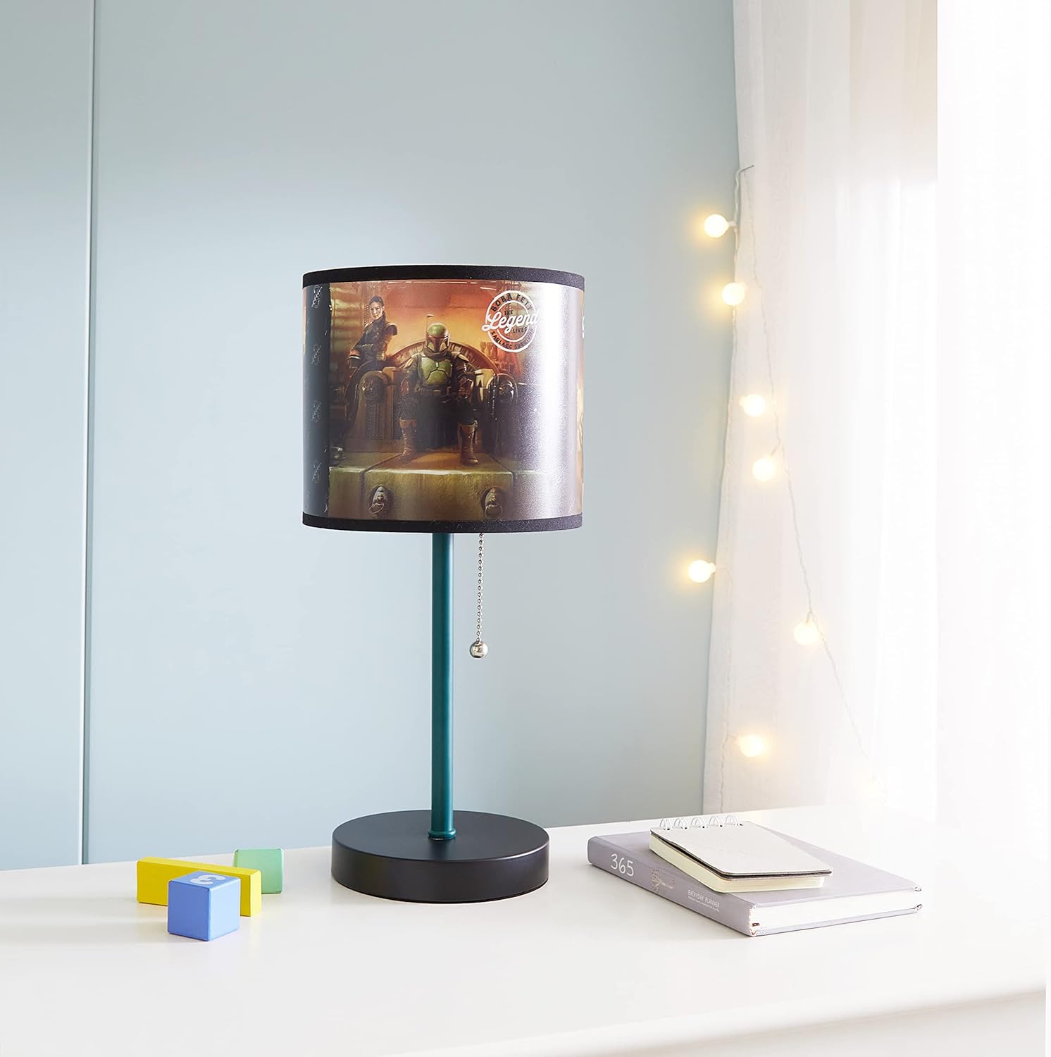 Disney Mickey Mouse 90th Anniversary Stick Table Kids Lamp With Pull Chain, Themed Printed Decorative Shade(Star Wars Boba Fett)