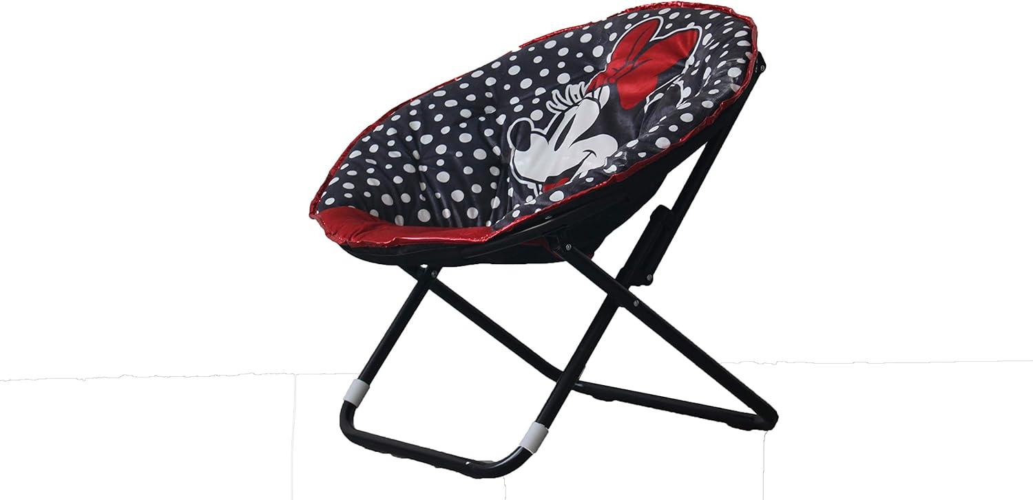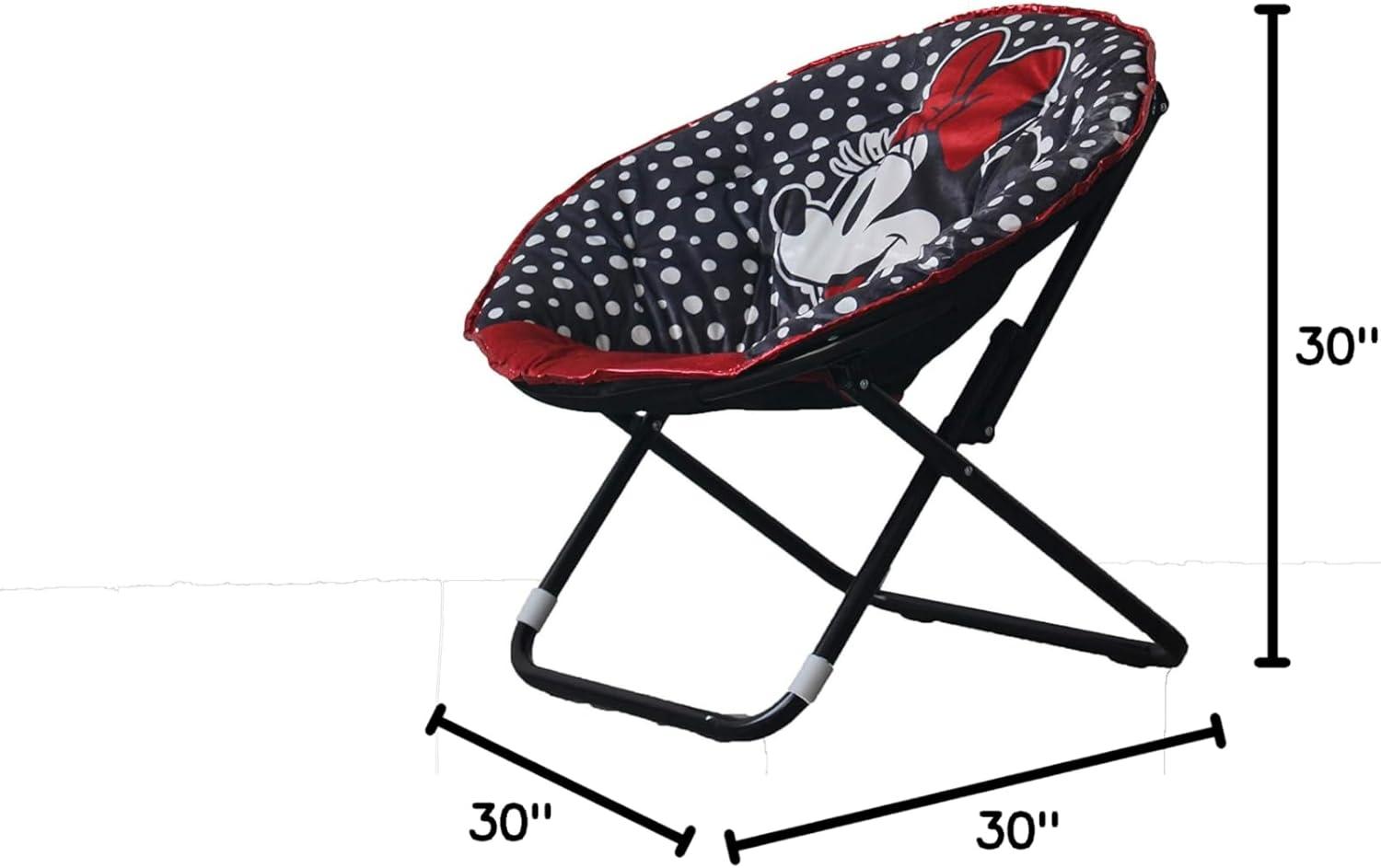Minnie Mouse fans will love this Saucer Chair. Oversized frame is comfortable and supportive to fit everyone from kids to adults. This chair features bright and fun Minnie Mouse graphics on plush seat. Chair dimensions: 30″x30″x30″, weight capacity is 221 lbs.