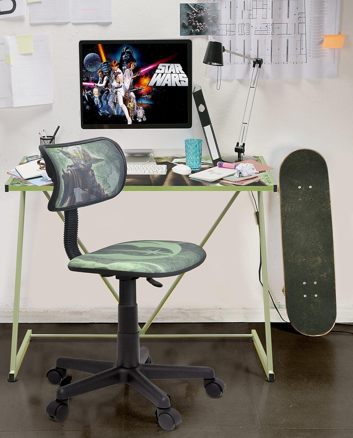 May the force be with you! The Star Wars Yoda Z Table is the perfect accent piece for any fan of Star Wars. The table is mid-sized, perfect for studying and doing homework or simply as a side or end table. The top is composed of MDF and printed with bright graphics of our favorite mentor – Yoda. The metal frame is Z-shaped, adding a modern and unique touch. The Z table is easy to assembly. Spot clean only. Dimensions: 28″ H x 16″ W x 16″ D.