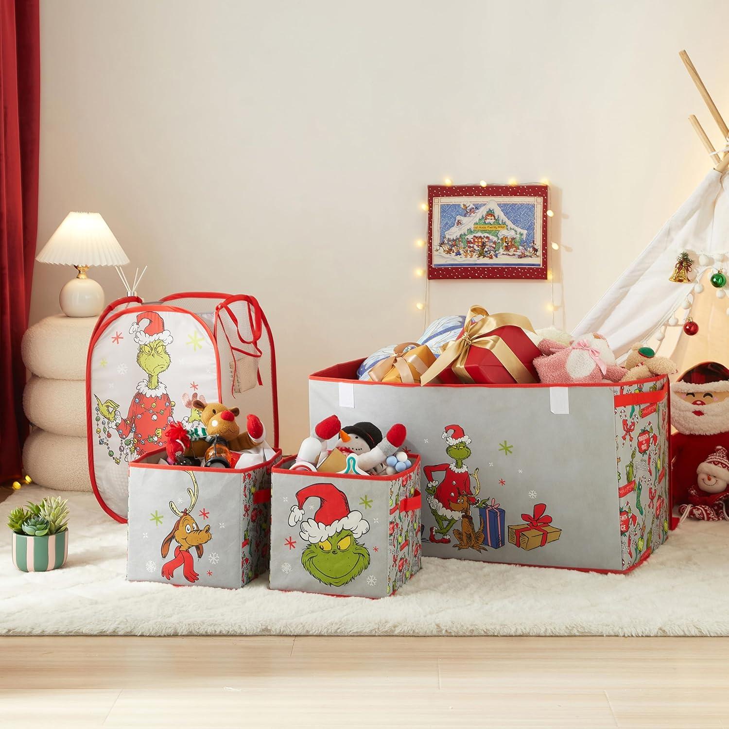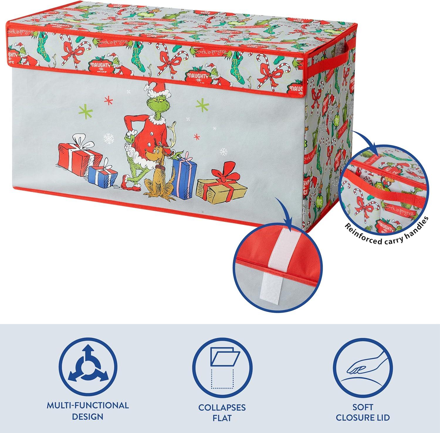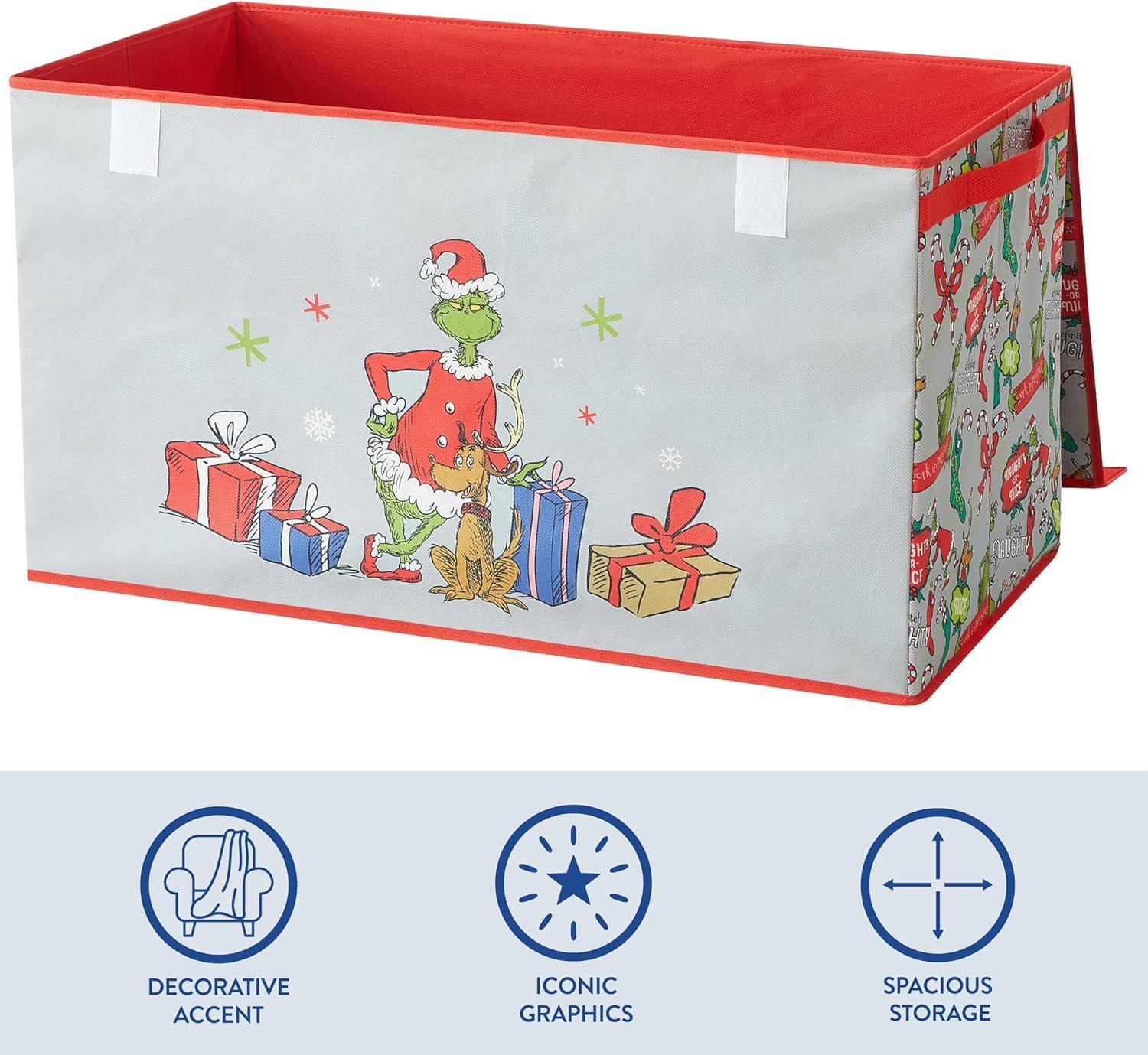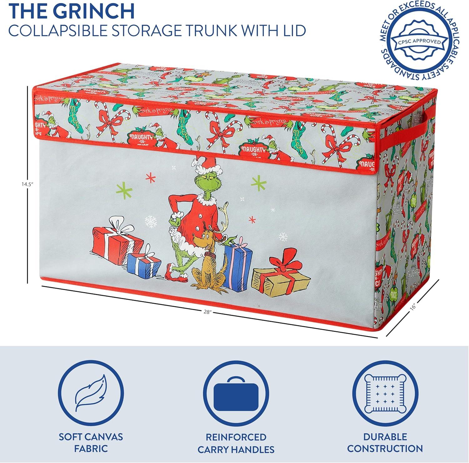 FESTIVE&KID FRIENDLY DESIGN: Featuring colorful graphics of the Grinch, Max, and holiday presents, this storage trunk doubles as a playful seasonal organizer. Perfect for holding Christmas gifts, wrapping paper, bows, ornaments, and holiday décor, it keeps everything neatly tucked away while adding a cheerful Dr. Seuss touch to your home. The bright, fun design makes organizing enjoyable for kids and practical for parents during the holiday season.