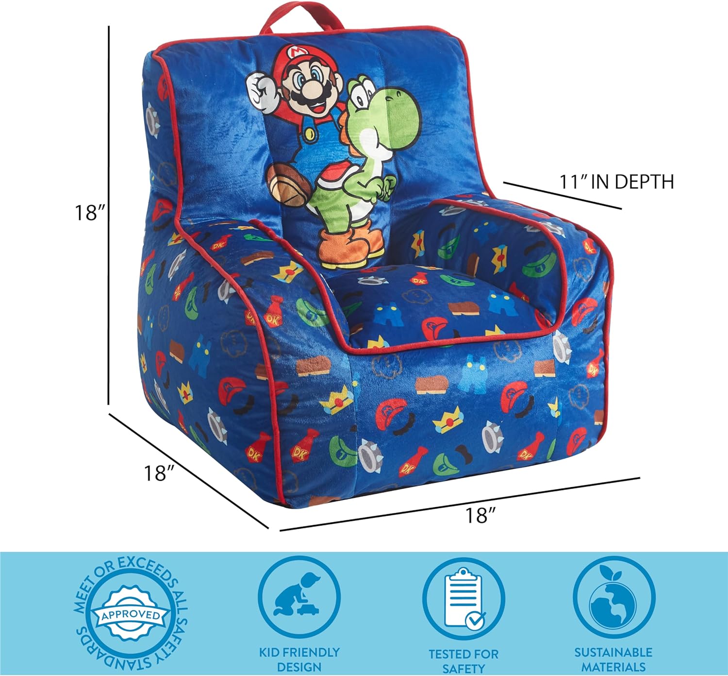PERFECTLY SIZED: Measuring 18″H x 18″W, seat Depth is 11″, this chair is best for kids ages 3-5. Chair also has safety zipper that is sealed closed to prevent seam from opening and beans coming out.
