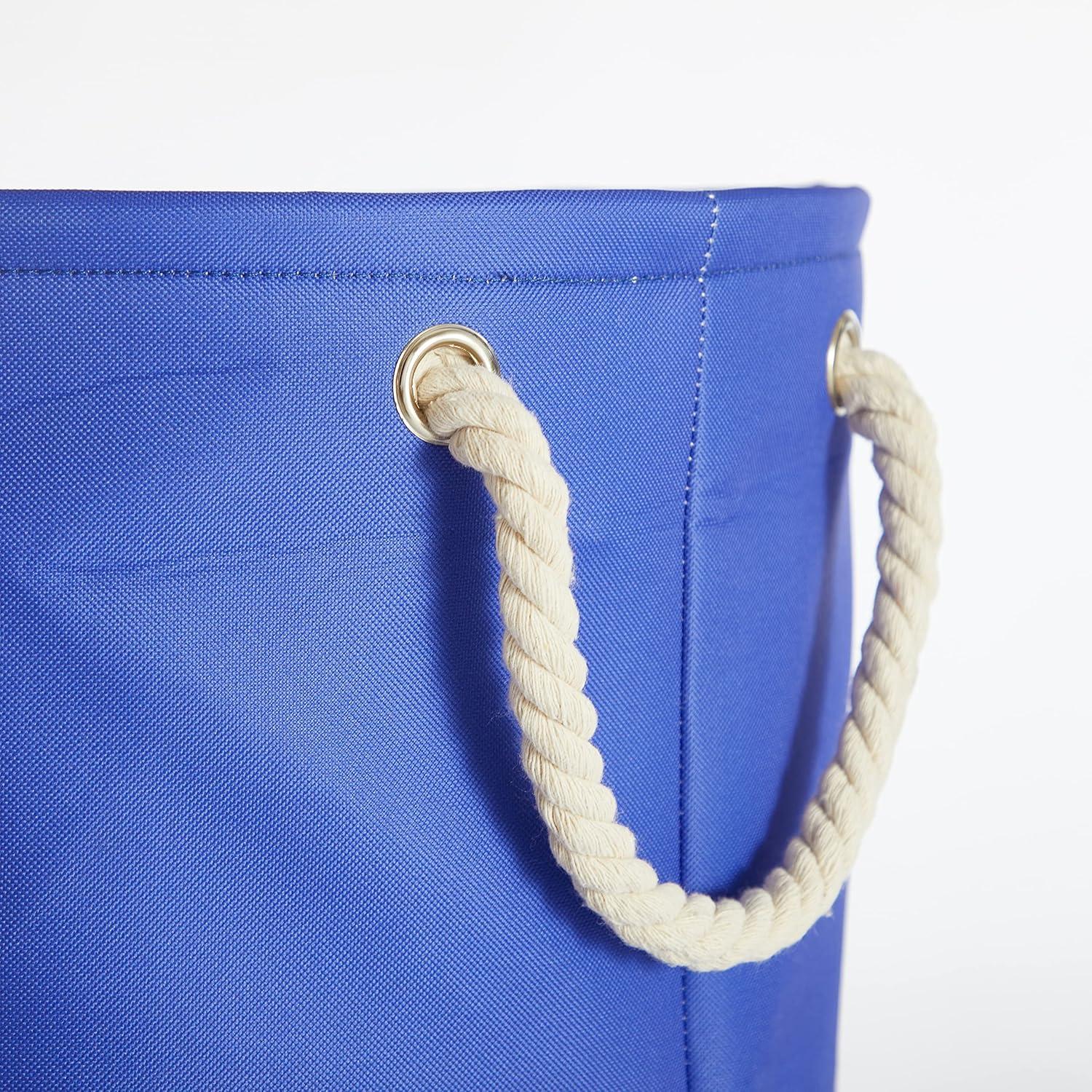 HIGH QUALITY AND DURABLE: Made from a thick and durable polyester canvas outer fabric and lined polyester nylon interior, these storage baskets are strong and sturdy to hold all your things. With a sturctured shape, these baskets stand upright. Each basket also features rope carry handles with metal grommets that allow you to easily pick up and carry.