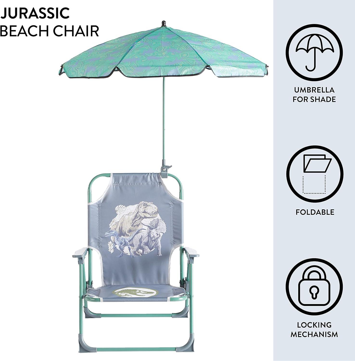 Idea Nuova Gabby’s Dollhouse Kids Folding Beach Chair with Umbrella, Outdoor Chair for Girls Ages 3+,Portable, Lightweight, UV Protection – Patio, Pool, Beach Travel Accessory(Jurassic World)