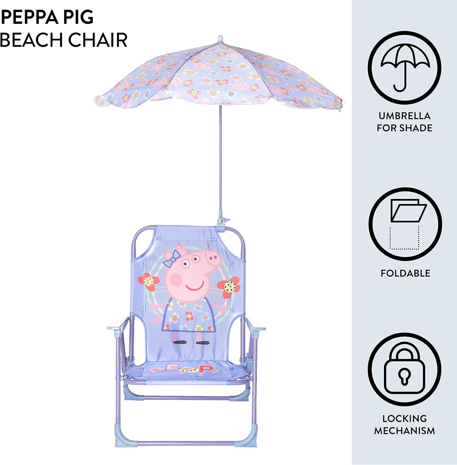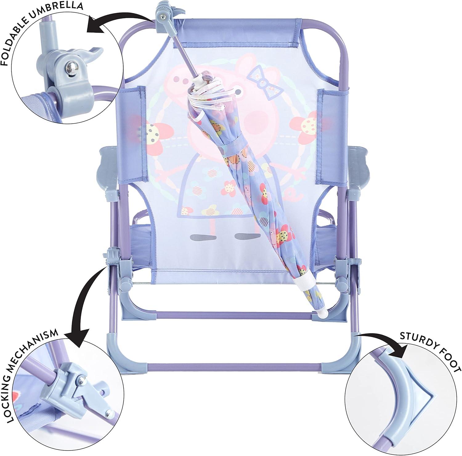 Idea Nuova Gabby’s Dollhouse Kids Folding Beach Chair with Umbrella, Outdoor Chair for Girls Ages 3+,Portable, Lightweight, UV Protection – Patio, Pool, Beach Travel Accessory(Peppa Pig)