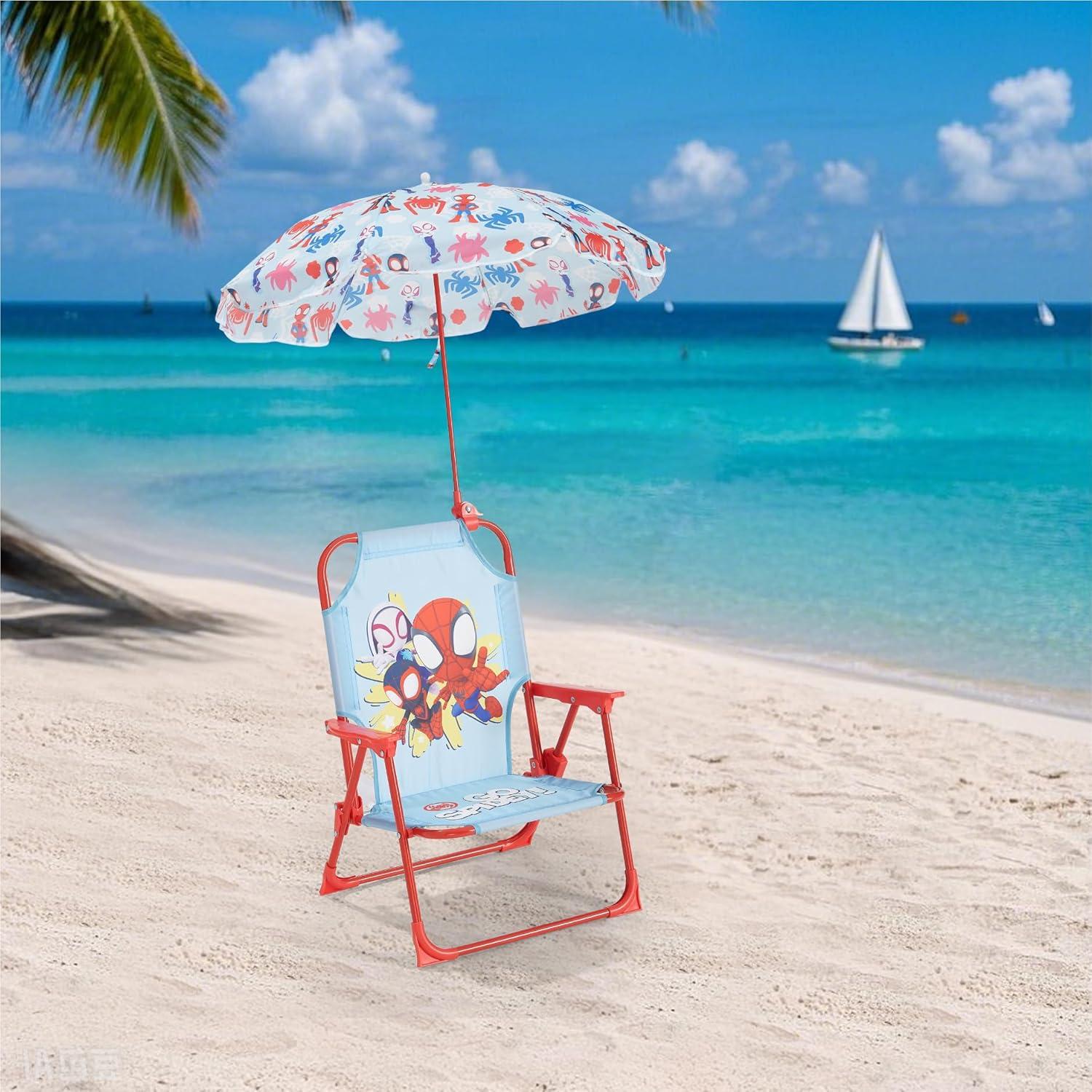 Your little one will love having his or her own chair while sitting out the beach, pool or any family outings! With an assortment of characters to choose from, there is a perfect chair for every child. Chair comes with an umbrella that easily clips onto the back to protect your child from the sun. This chair is lightweight but durable and is best for all kids ages 2-7 when feet can touch the ground when seated.