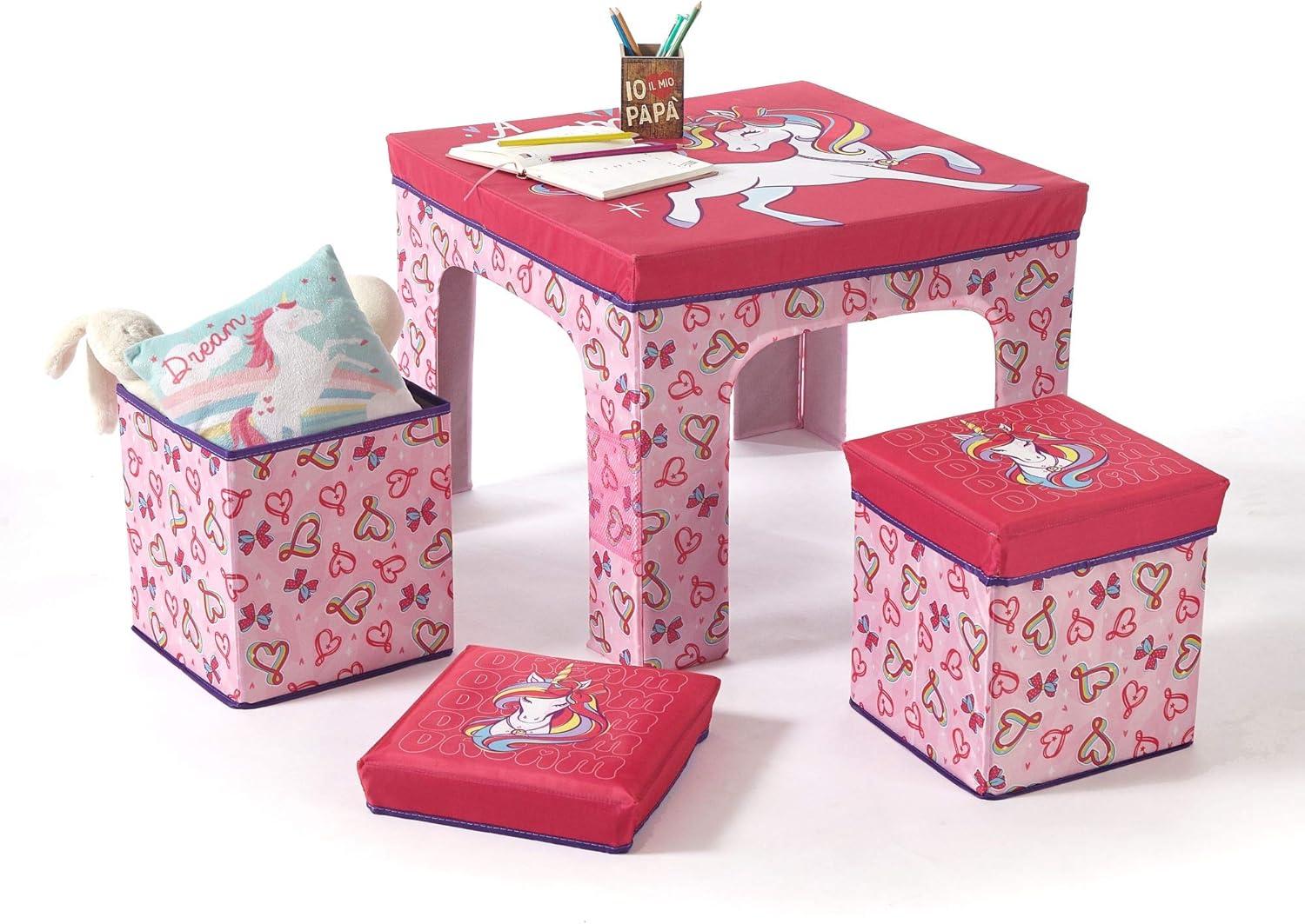 Give your kids a place to sit and a place to keep their toys The 3 Piece Storage Table and Ottoman Set is the perfect solution to maintaining clutter in your home while giving a place for your little one to do everything from arts and crafts to eating dinner Table and Ottomansare collapsible in design and have removable lids so you can easily break this set down and store away when not in use. Perfect for kids ages 3+.