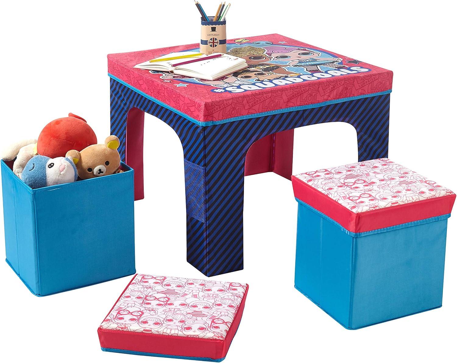 ORIGINAL LOL SURPRISE DESIGN: Storage Table and Ottomans are printed with fun and bright graphics featuring kid favorite LOL Surprise dolls and collectables. Table Top features Cosmic Queen, Queen Bee, Miss Punk, Pup Bee and “#squadgoals”.