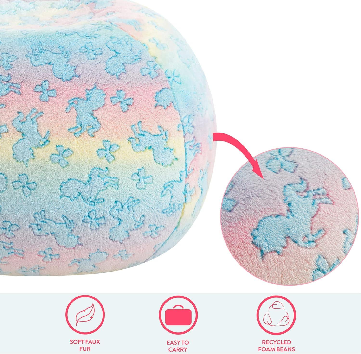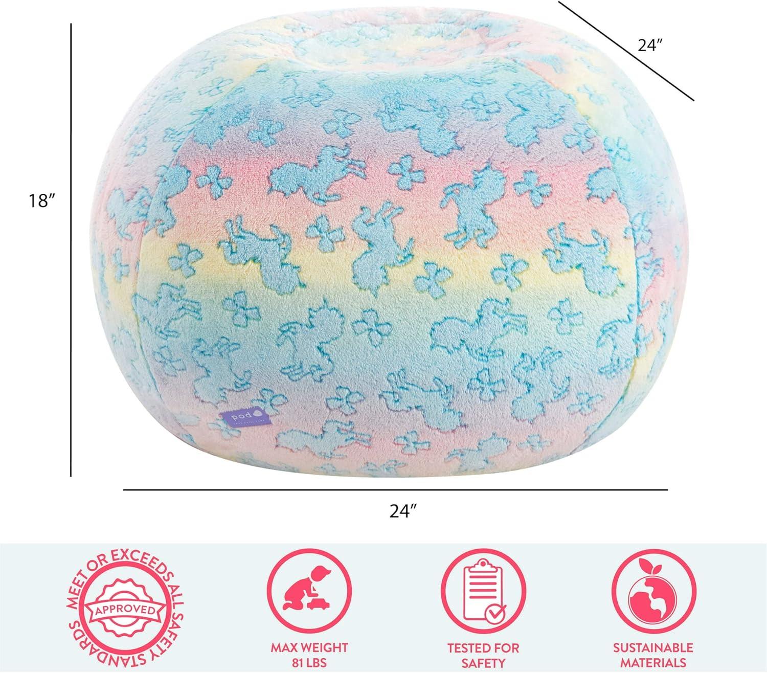 DIMESIONS: Bean bag chair measures 24″ L x 24″ W x 18″ H with a weight capacity of 81 lbs. Perfect for kids!