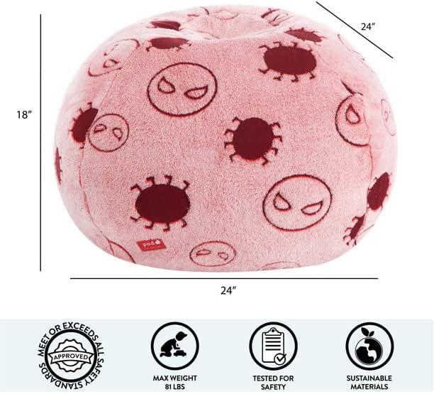 DIMESIONS: Bean bag chair measures 24″ L x 24″ W x 18″ H with a weight capacity of 81 lbs. Perfect for kids!