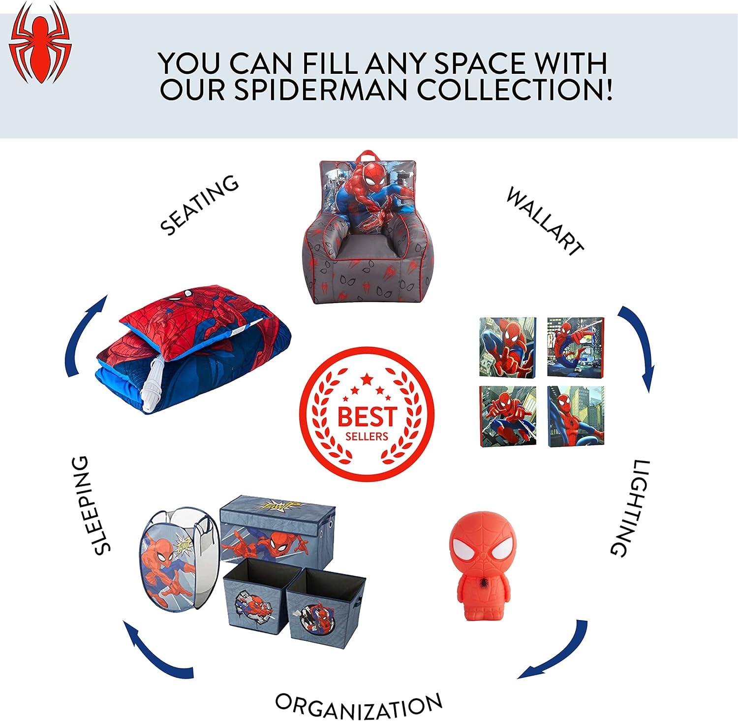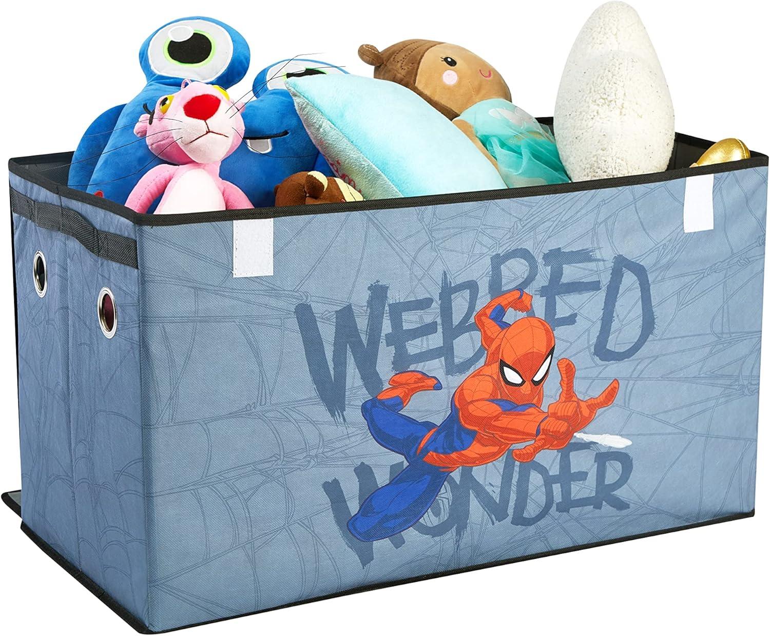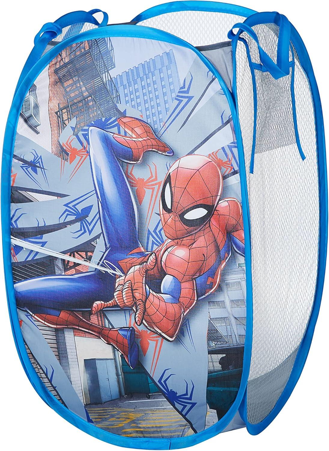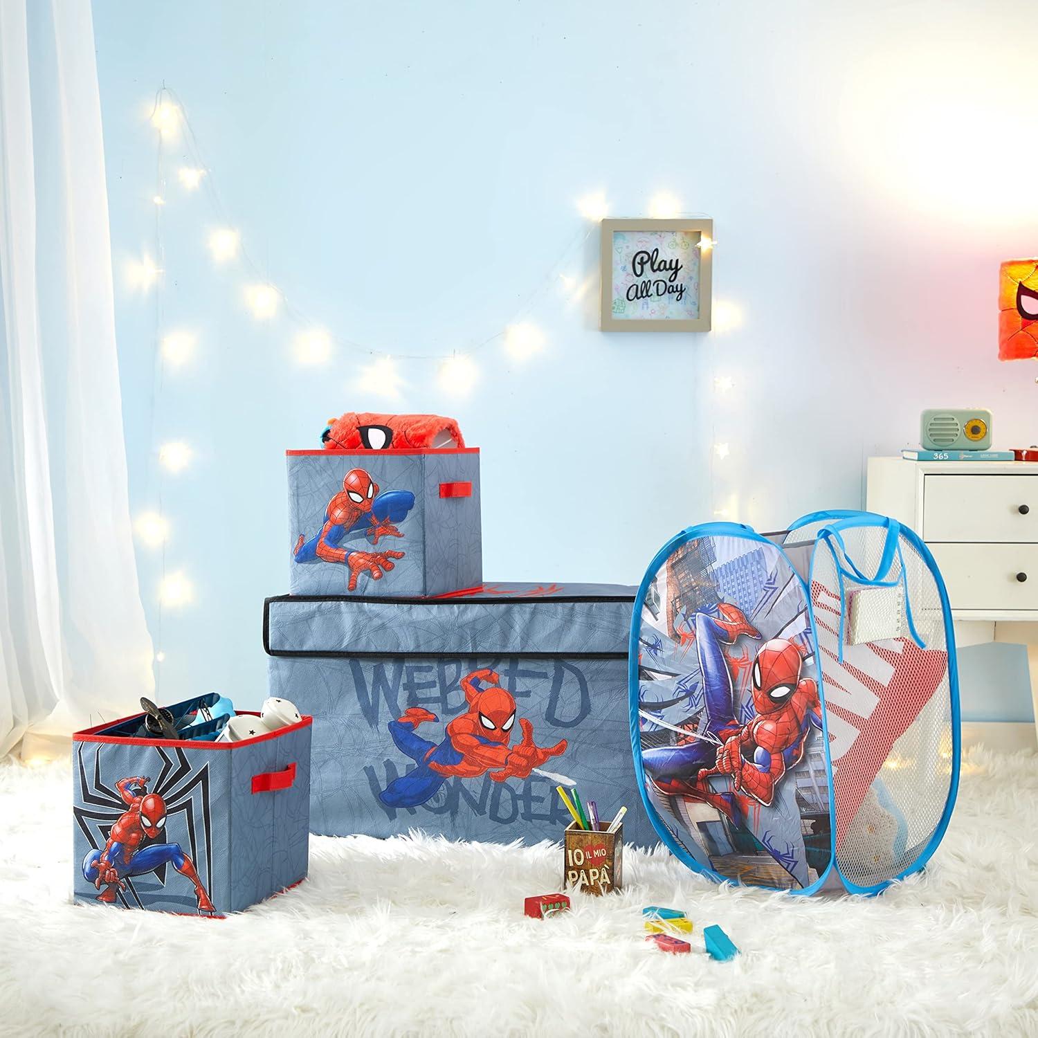 Idea Nuova Marvel Spidey and His Amazing Friends 4 Piece Room Solution Storage Set,Toy Organizer, Collapsible Bins & Hamper for Kids Bedroom or Playroom(Spiderman Blue)