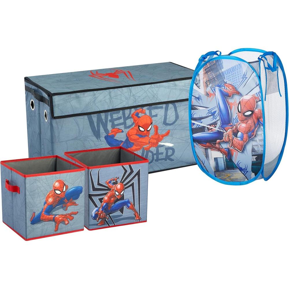 Idea Nuova Marvel Spidey and His Amazing Friends 4 Piece Room Solution Storage Set,Toy Organizer, Collapsible Bins & Hamper for Kids Bedroom or Playroom(Spidey and His Amazing Friends)