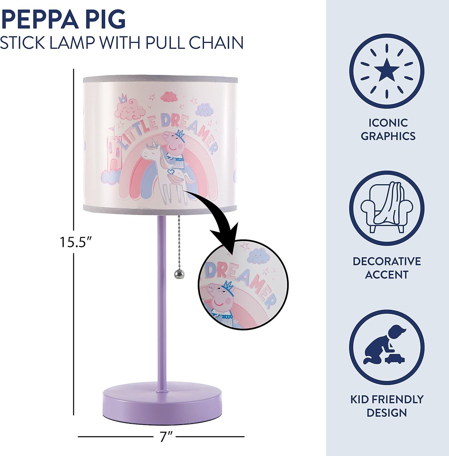 Idea Nuova Space JAM: A New Legacy Stick Table Lamp with Printed Shade, 15.5″ H x 7.5″ W(Peppa Pig)