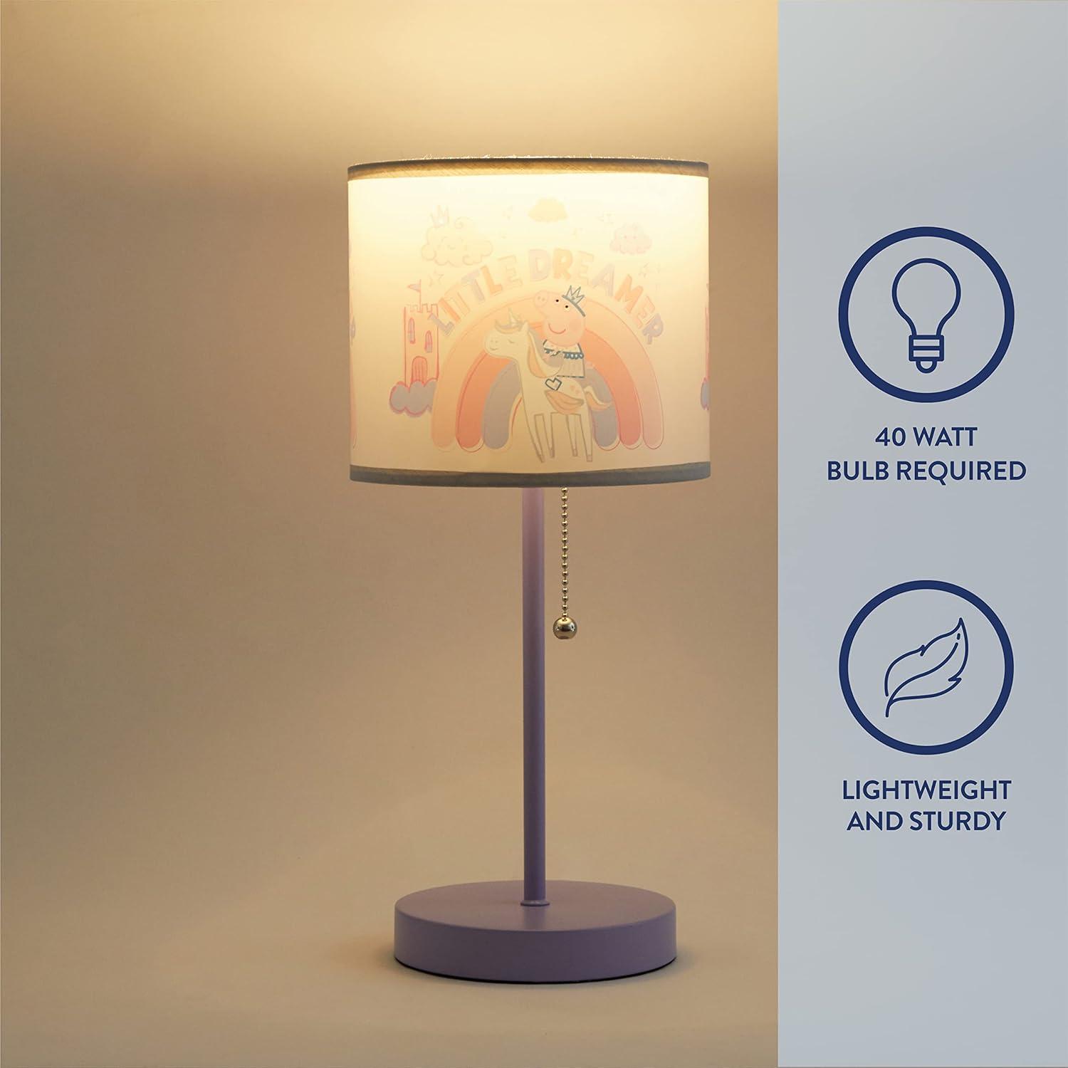 QUALITY DESIGN: Compact and relatively lightweight, it provides the illumination you need where your kids sleep or play. This colorful themed character lamp features a metal base and a themed printed shade. Table lamp has printed plastic shade that is durable and made from quality, long lasting material. The neutral tone will match and coordinate with any décor you choose.