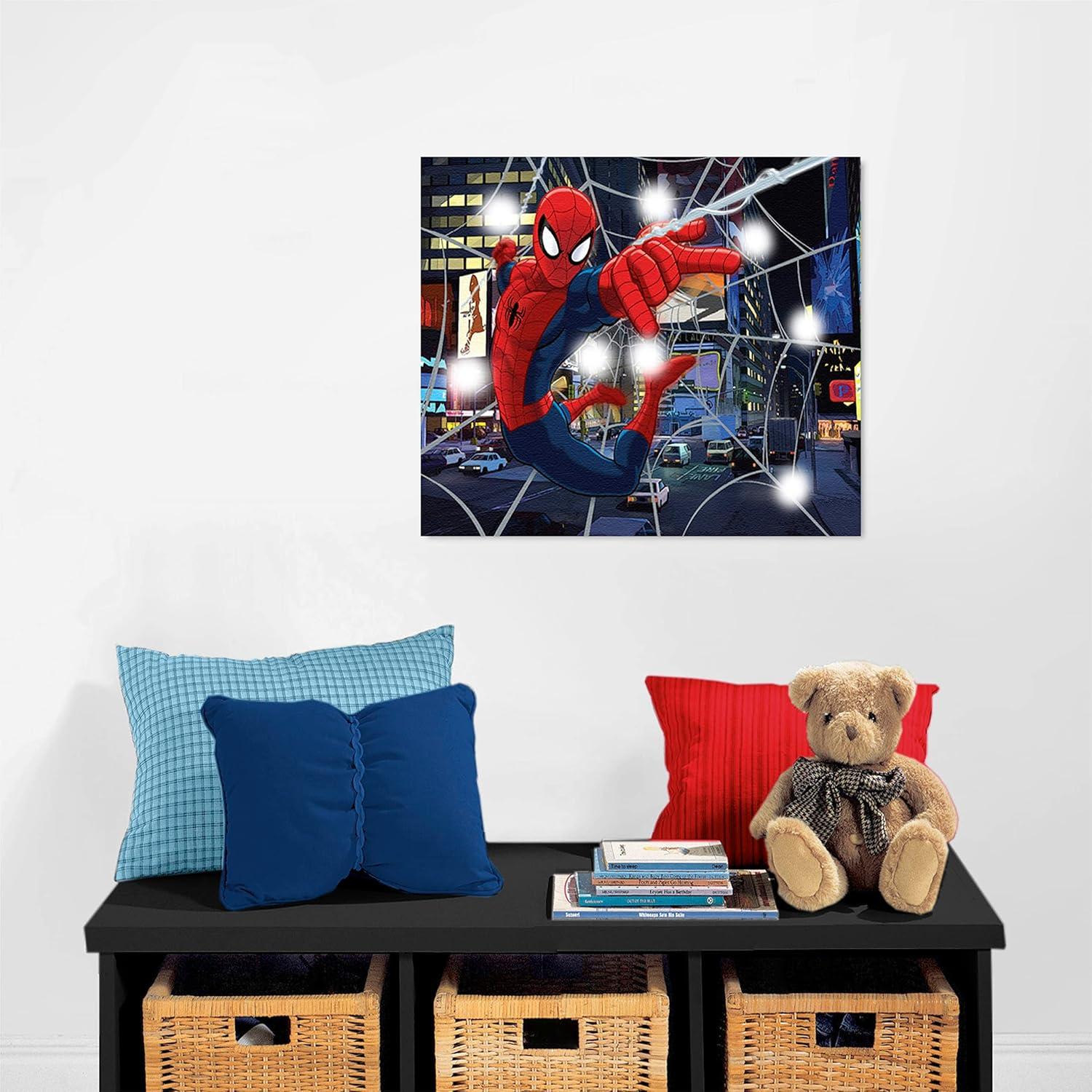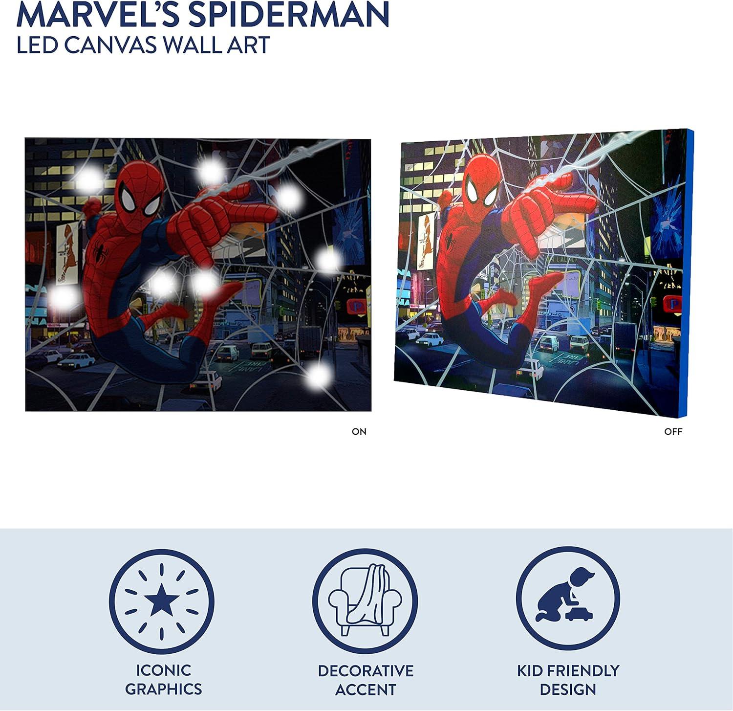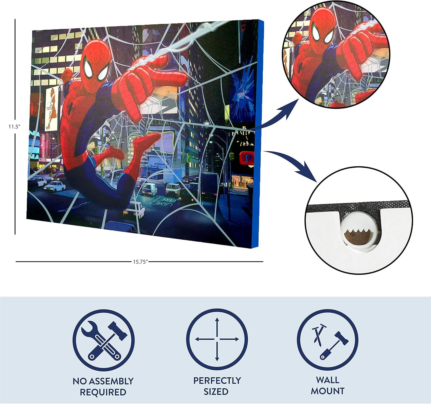 Idea Nuova Spider-Man LED Canvas Wall Art, Children’s Home Décor, Bedroom, Spiderman / Blue, 11.50″ x 15.75″