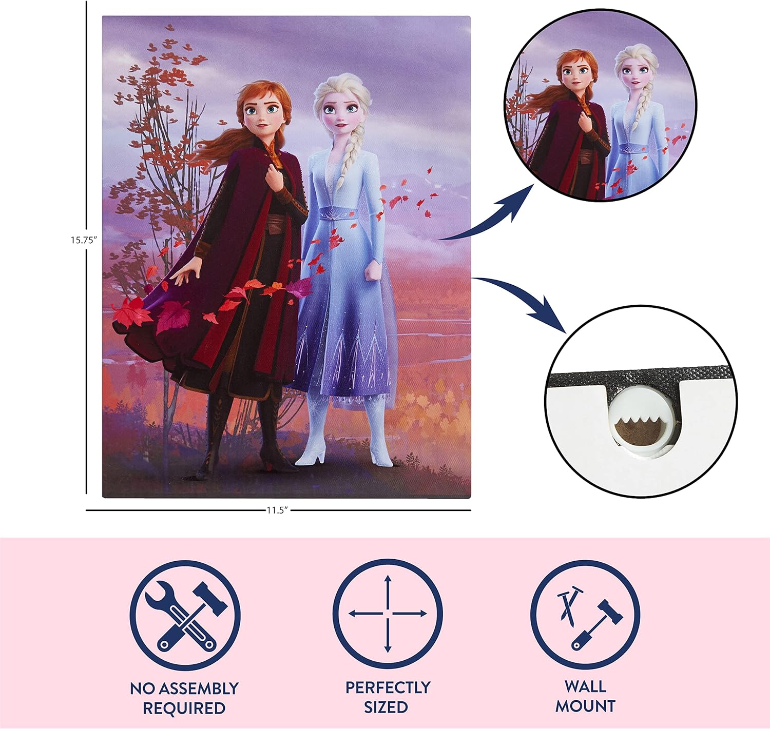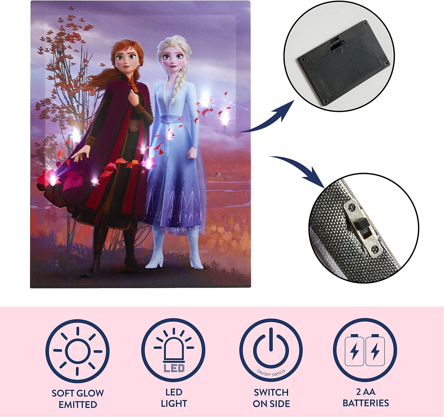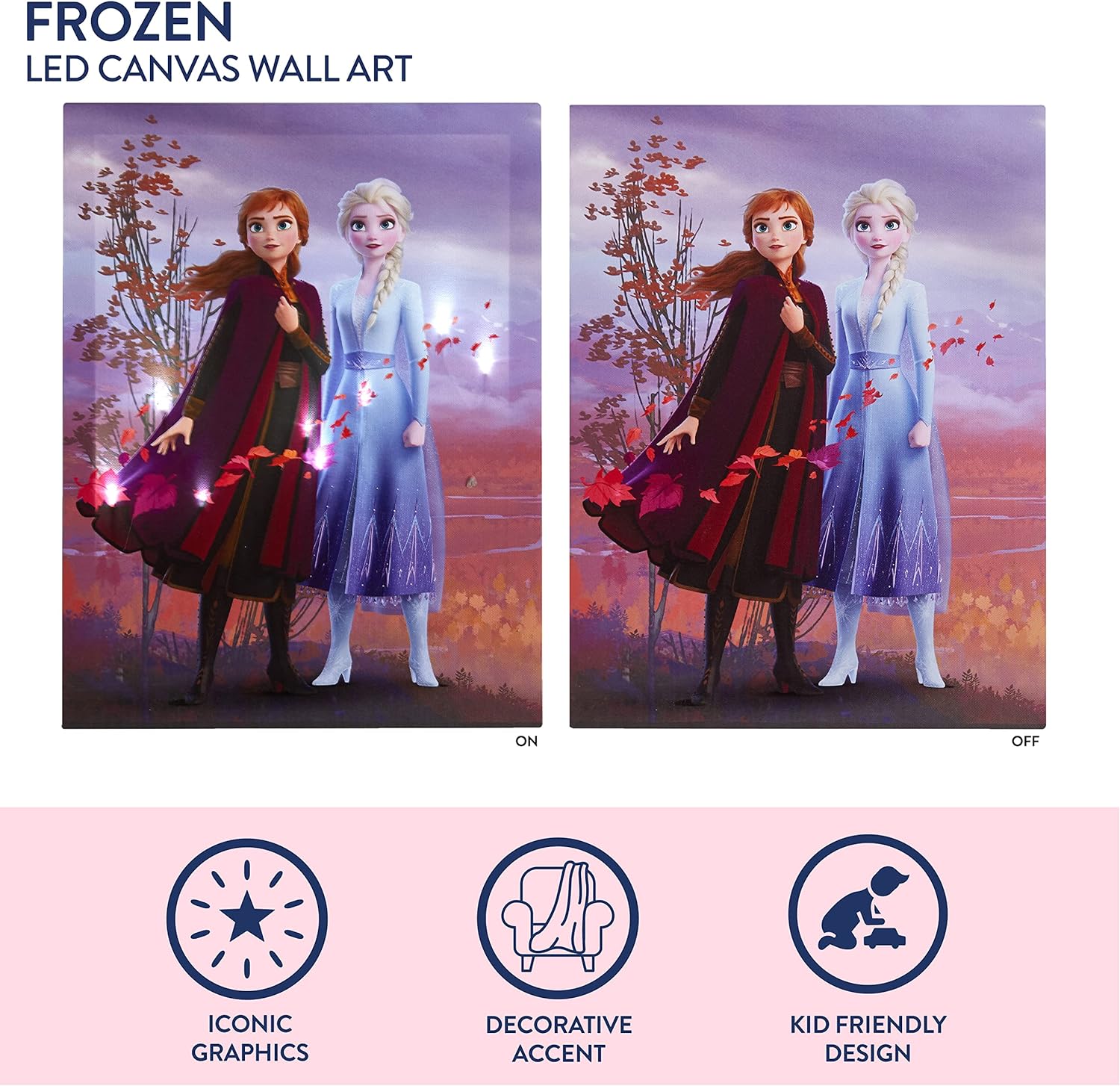 Hang the LED Canvas Wall Art in your child's bedroom to display a colorful print of your child's favorite characters. The LED Lights will light up your child's room to create a beautiful illusion on the artwork. The lights emit a soft glow that can also be used as a night light. Size: 15.75″ W X 11.5″ H.