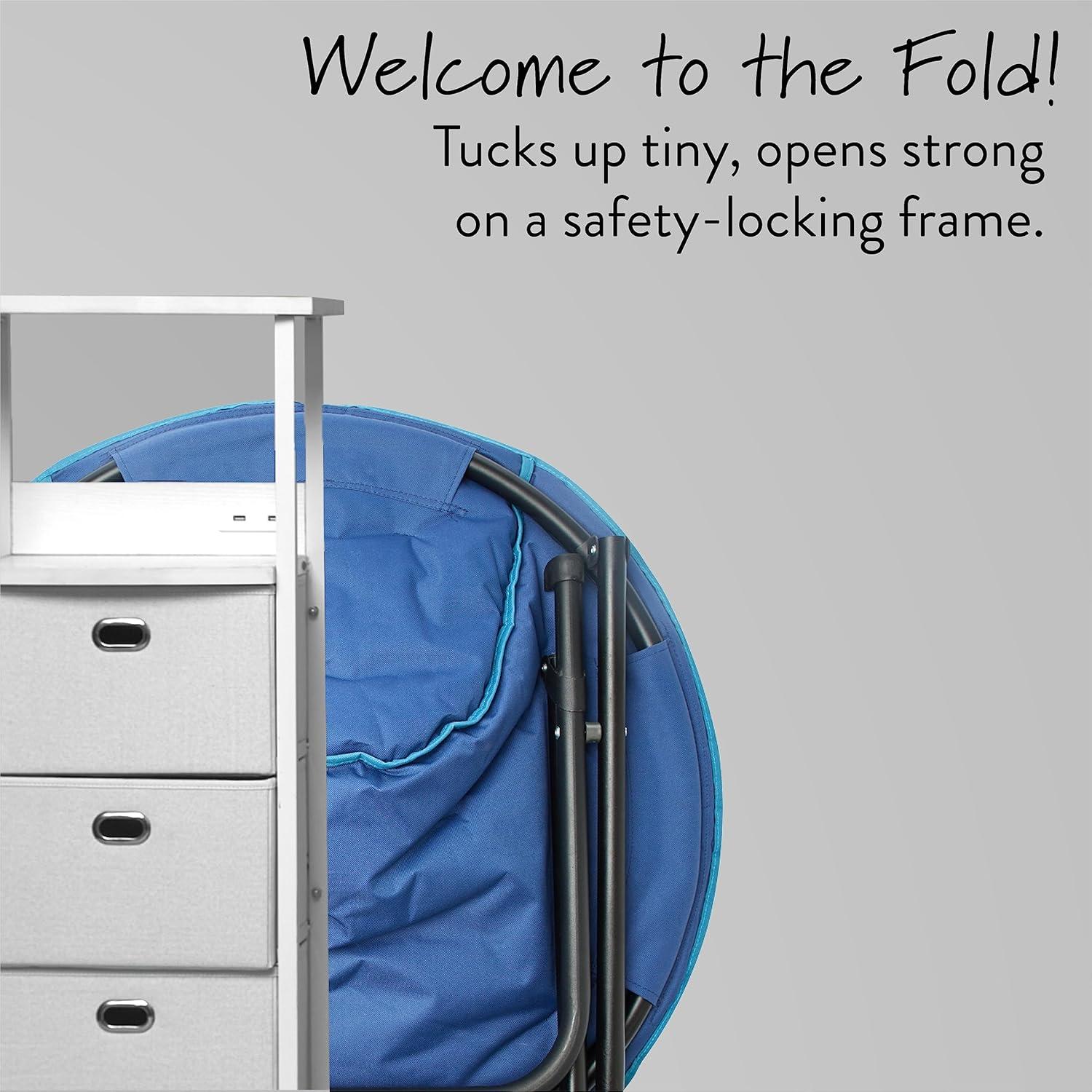 FOLDABLE: A foldable steel frame supports up to 225 lbs and folds flat when not in use, making it easy to hide this decorative saucer chair out of sight without taking up a significant amount of room in tight spaces. This saucer chair also has a safety locking mechanism on the leg for added support. Carry this saucer chair with you to your next destination, as it is also travel friendly.