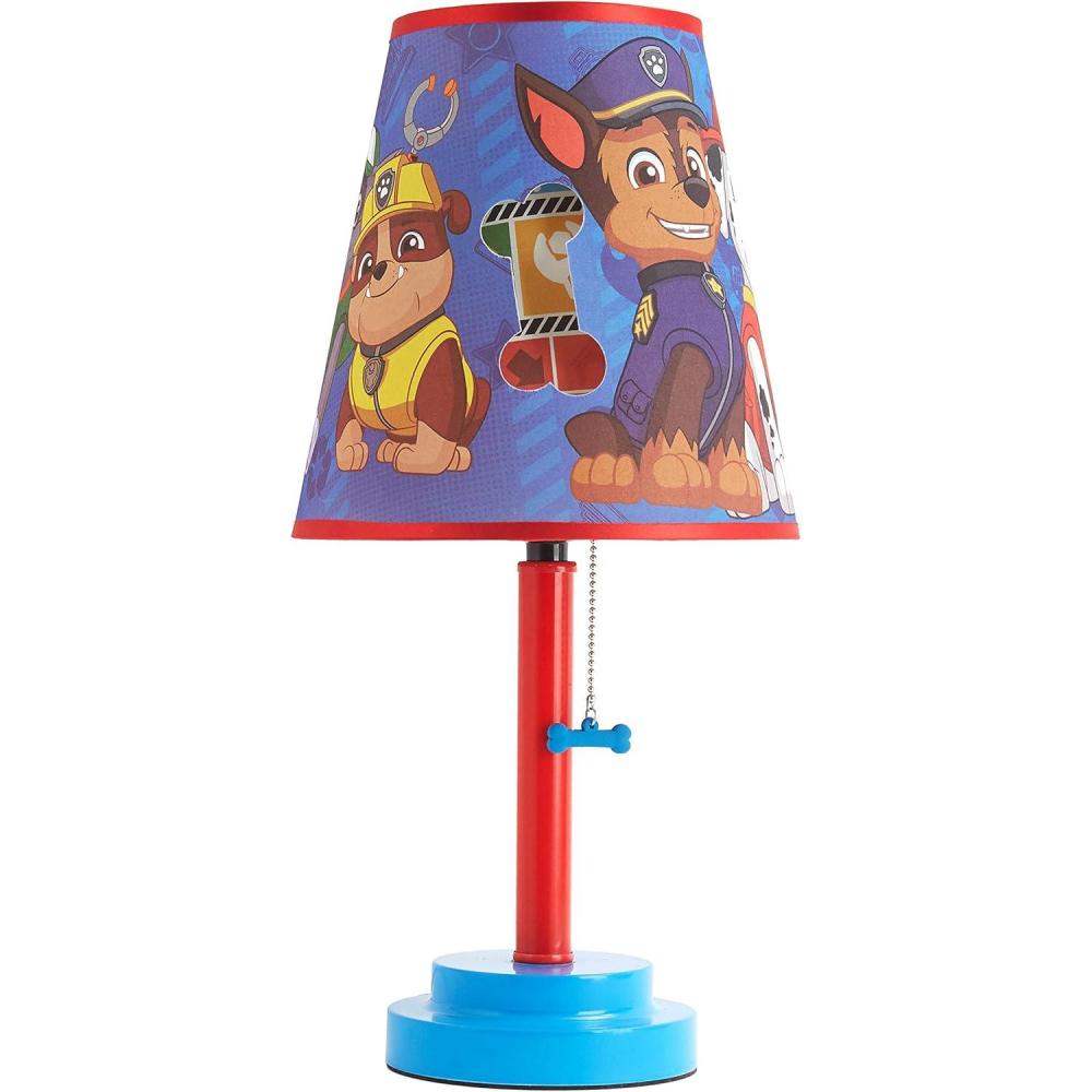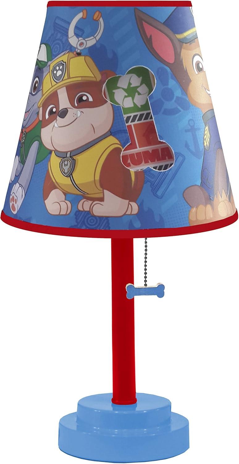 Add a touch of masterpiece to your decor with the Paw Patrol Table Lamp with Die Cut Lamp Shade. Featuring unique and creative designs of your favorite rescue pups, the table lamp is the perfect way to light-up your child's bedroom, playroom, or study area. It is an excellent decorative accent and is small enough to fit onto any desk or side table. It features a durable metal base with canvas die cut lamp shade. No assembly required. 40-Watt bulb required, not included. Dimensions: 18″ H x 9″ W x 9″ L; Metal base has a 5.5″ circumference.