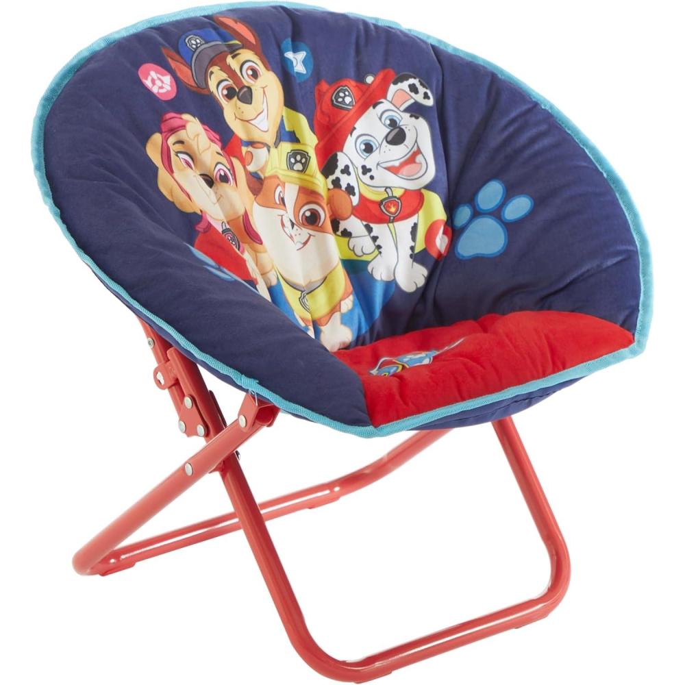 Featuring a unique Paw Patrol design, your child can enjoy their favorite book or television show while sitting comfortably on their Paw Patrol toddler saucer chair. Its saucer shape makes it the perfect seat for lounging and relaxing. The chair is made out of a sturdy metal frame with a polyester cushioned seat for extra comfort. When not in use, the saucer chair can fold down flat, making it ideal for storage and travel. It's the perfect size for toddlers and small children. Maximum weight is 81 pounds. Spot clean only.