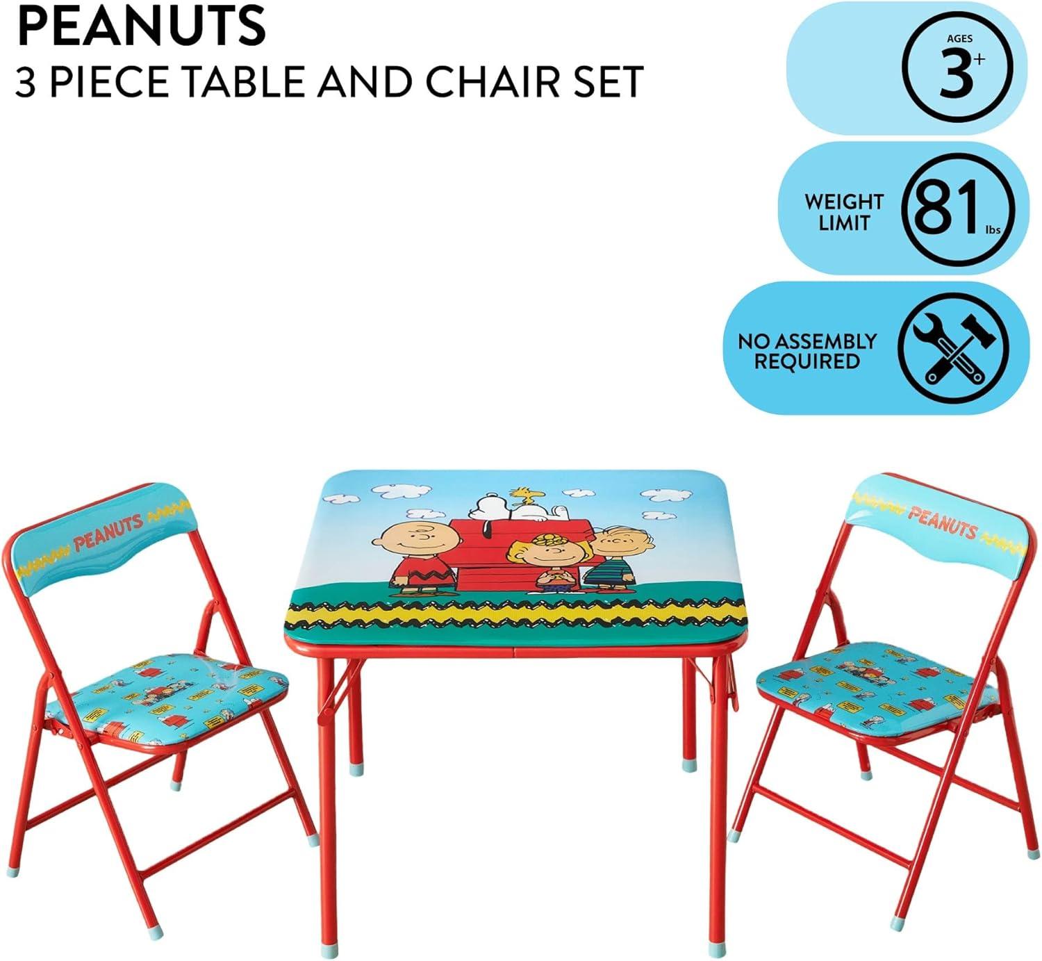 Peanuts Kids Activity Table and Chair Set,3-Piece Furniture Set with 1 Square Table & 2 Folding Chairs,Playroom Table Set for Ages 3+