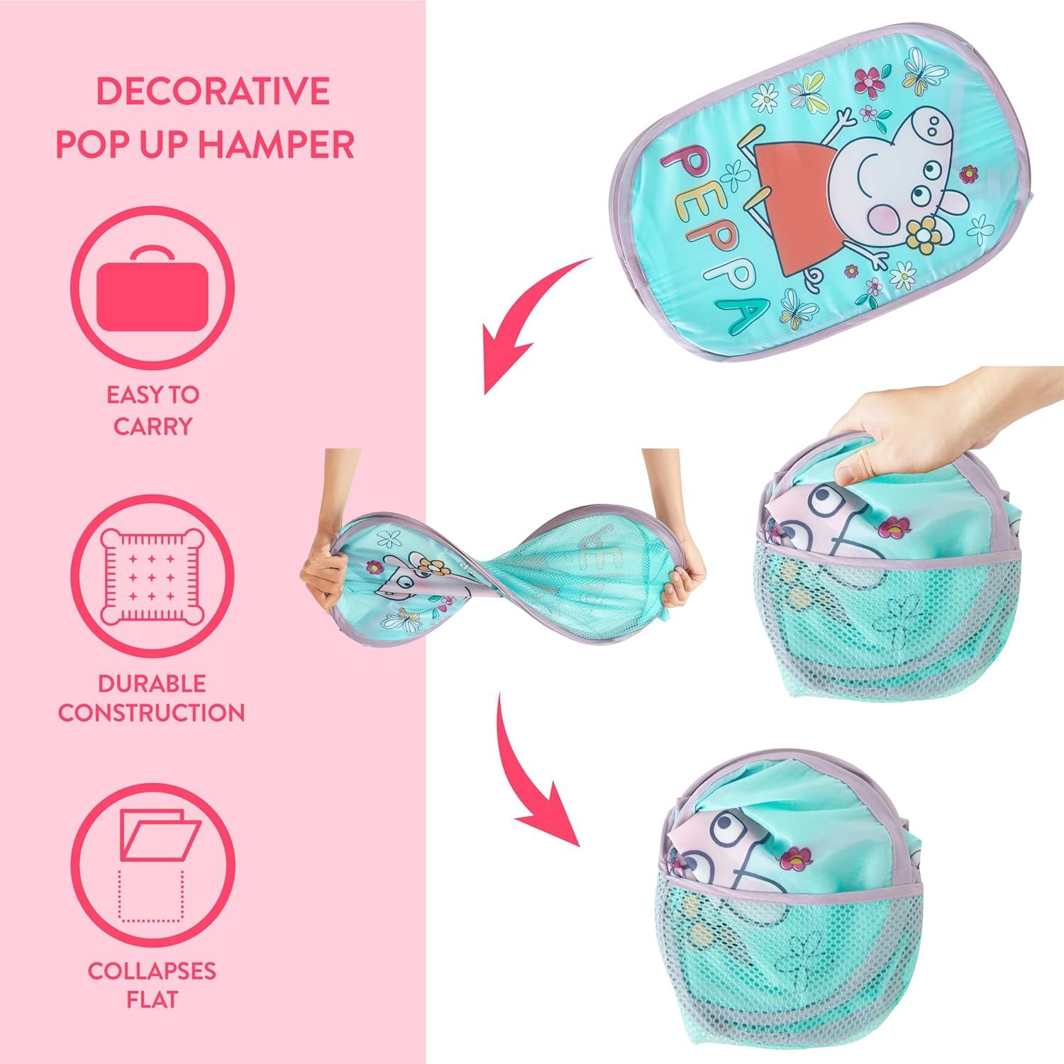 Peppa Pig Collapsible Laundry Basket, Lightweight Clothes Storage Organizer, Foldable Hamper for Bedroom & Playroom