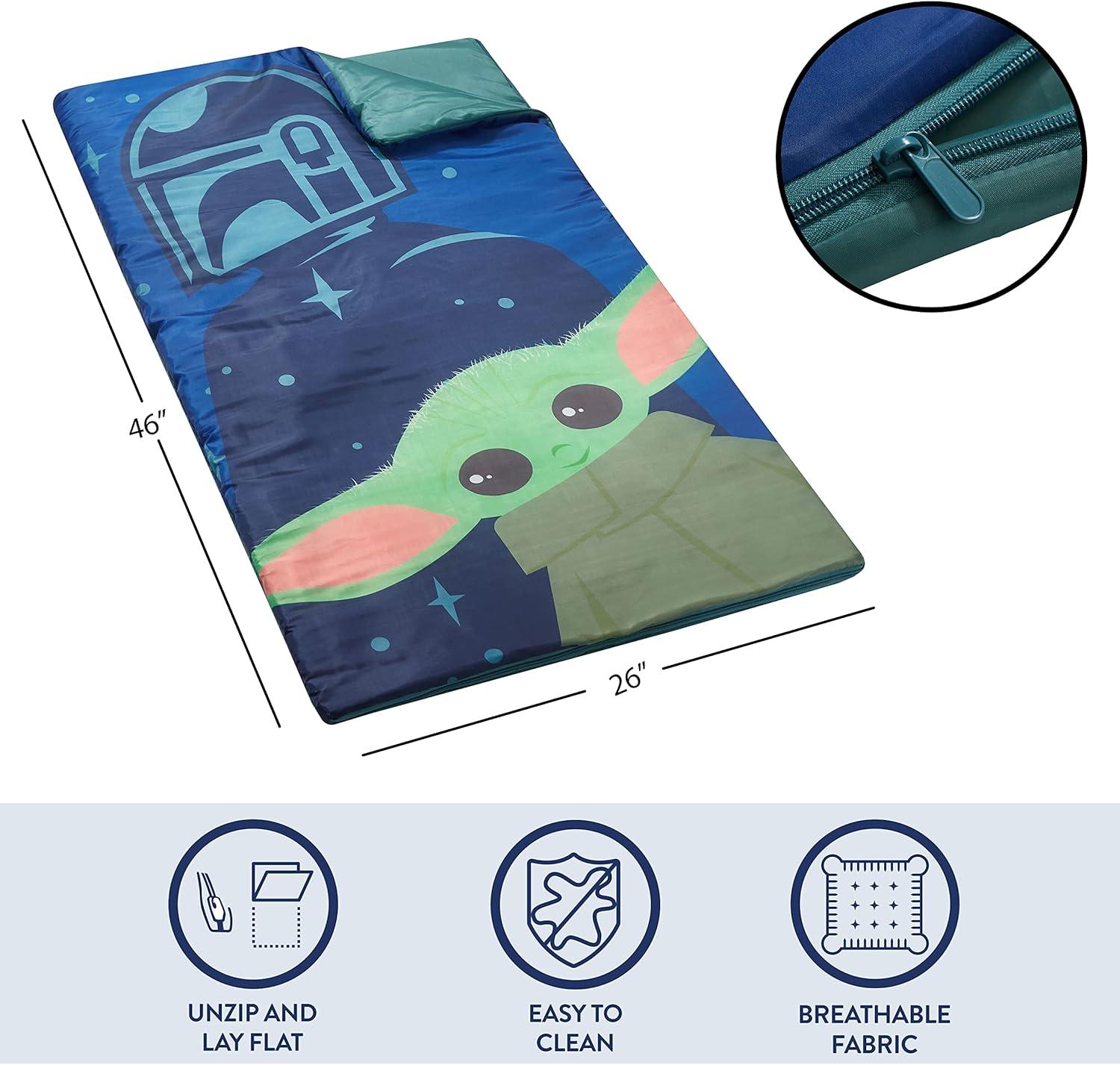 DESIGN: This slumber set features adorable graphics from Star Wars ;The Mandalorian. Designed in a vibrant background color with Star Wars graphics from the famous brand. The perfect addition to your child's bedroom or playroom. The design on this slumber set will add a pop of color along with your child’s favorite characters.
